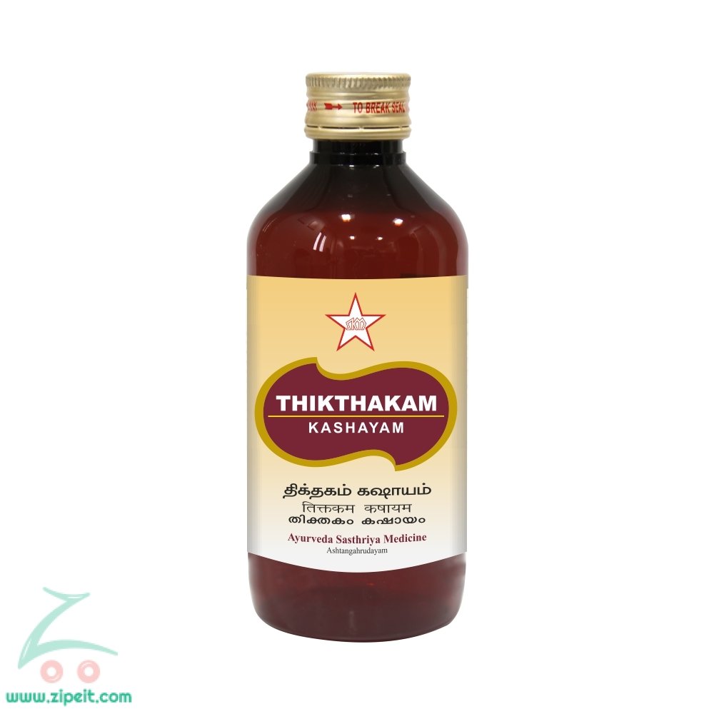 The formulation, Thikthakam Kashayam, is an innovative preparation using drugs of Thikthakam Ghrutham (medicated ghee) explained in the Ayurveda classical text Ashtangahrudaya. The drugs of the above Ghrutham made into a decoction.